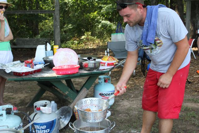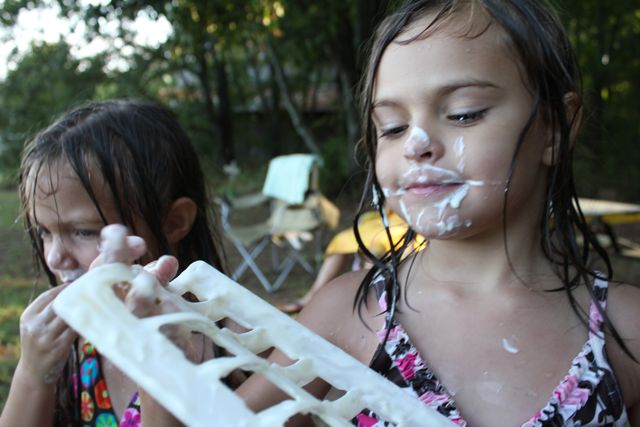 Nothing says goodbye to summer like a great big water slide, fish in the fryer, and homemade ice cream. This past weekend we celebrated family and summertime at my parents’ house, aka Paynes-a-plenty Plantation. Since a gathering of our extended family at this time is becoming something of a tradition, we decided to give the event an official name and the Lazy Hazy Daze of Summer Meltdown was born! It’s the perfect summary of a Payne (with a little Beeson, Ashworth, Volz, Stephens, Brackett) family event. And as we all know, it’s not over until…