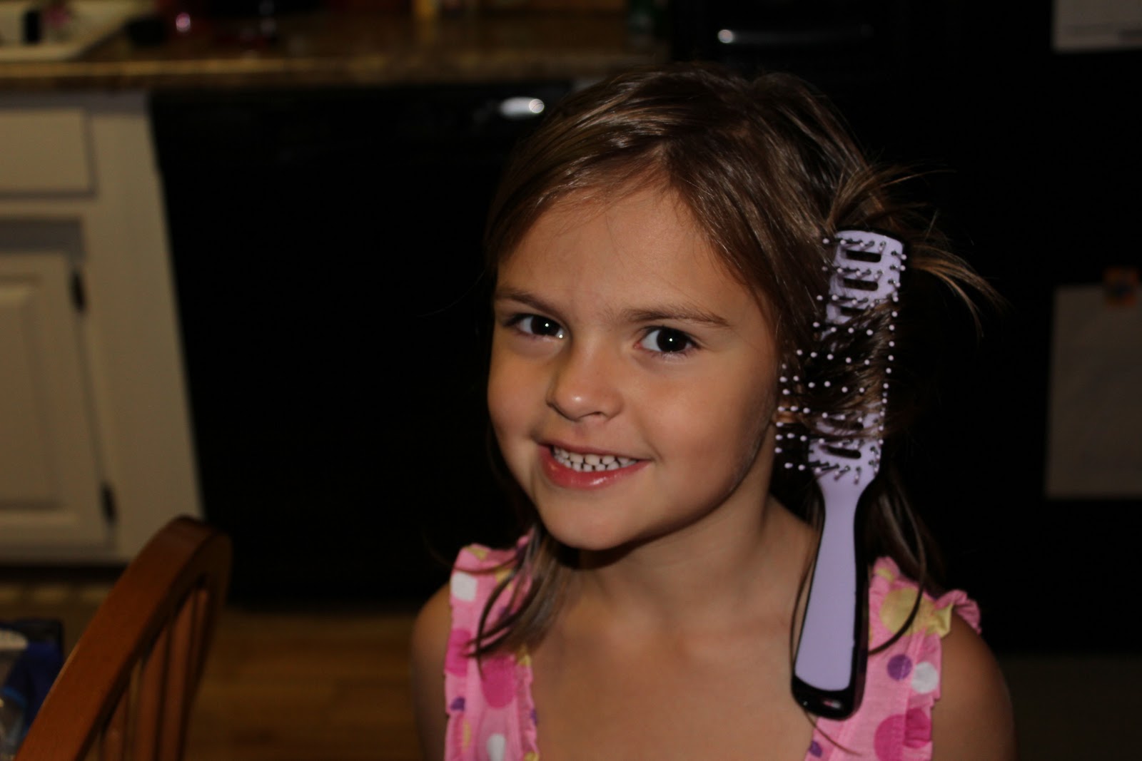 You didn't post the five minutes later picture when you were both in tears trying to get the brush untangled? Bless her!