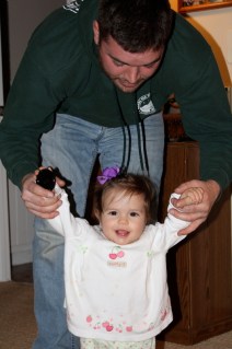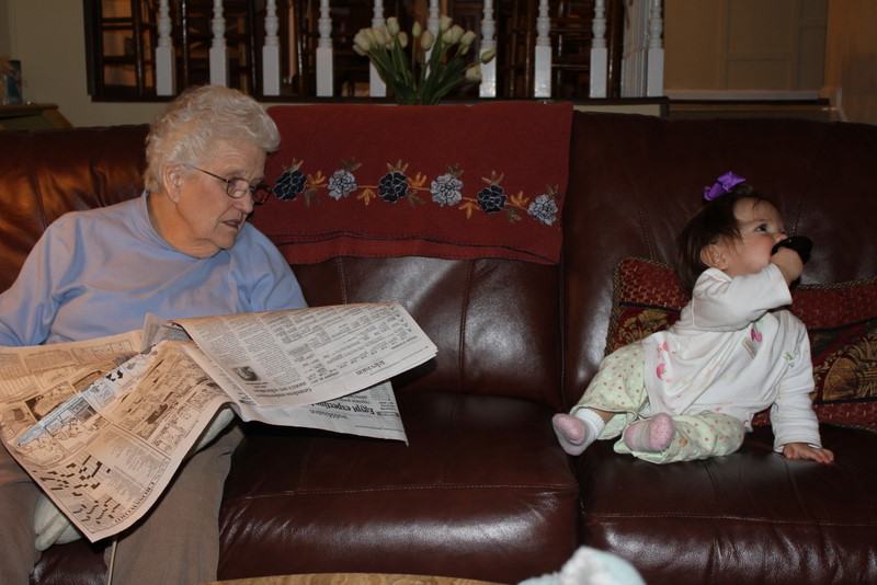 Friday night, we headed south just a tad to visit my grandparents and see my Aunt Kathy who was in town for a few days. While she made homemade pizza and set off the smoke detectors and then opened all the windows and froze my grandmother, Amelia had a good time navigating all the stairs in the tri-level house and bonding with her Uncle Corey who is proving that someday he might be ready to have a daughter of his own.