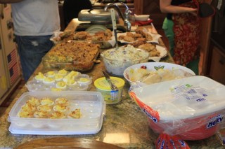 | When I ‘fessed up to my imperfect birthday cake and my sort of successful fried chicken, I neglected to tell you how incredible my sister’s contributions were. Katy made the macaroni, potato salad, deviled eggs, and helped salvage the cake. Which she all pointed out to me about 30 seconds after my blog posted. I owe her a good sisterly post soon. |