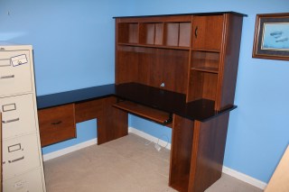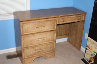 And this is the other desk that was “mine”. Not really. Really it was another place to gather clutter. We’re working on that.