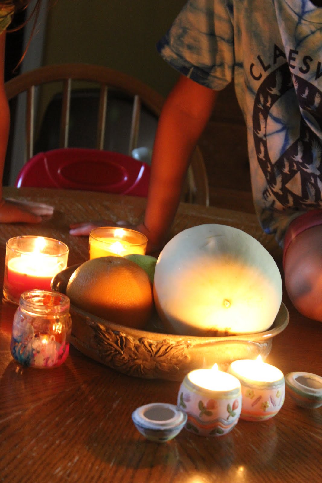 Candlelight. It’s soothing and calming and somehow when I light the candles after the kitchen has been cleaned and the girls are settling in for bedtime I feel like I can breathe a little more and realize that it’s small stuff, all this strife. And they bring me the candles from the Easter baskets and beg for them to be lit too so they can have a little flame of my light.