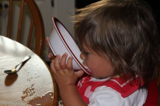 She wanted cereal with milk like her sisters. And actually, she did a really good job eating it!