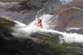 We’re heading back up to Asheville in a few days for a family mini-vacation, so Joshua will get to slide down the “big rock into freezing cold water” as described to him by the girls.
