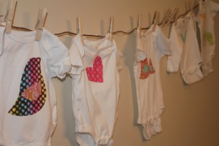 | My cousin Heather is having a girl soon, so we spent Saturday afternoon making sweet onesies at her baby shower. |