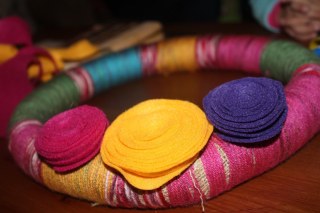 I think it will photograph better when I get around to hanging it up.  But it’s my very first yarn wreath.  The next one is about half done.  Who can believe I’d finish something?
