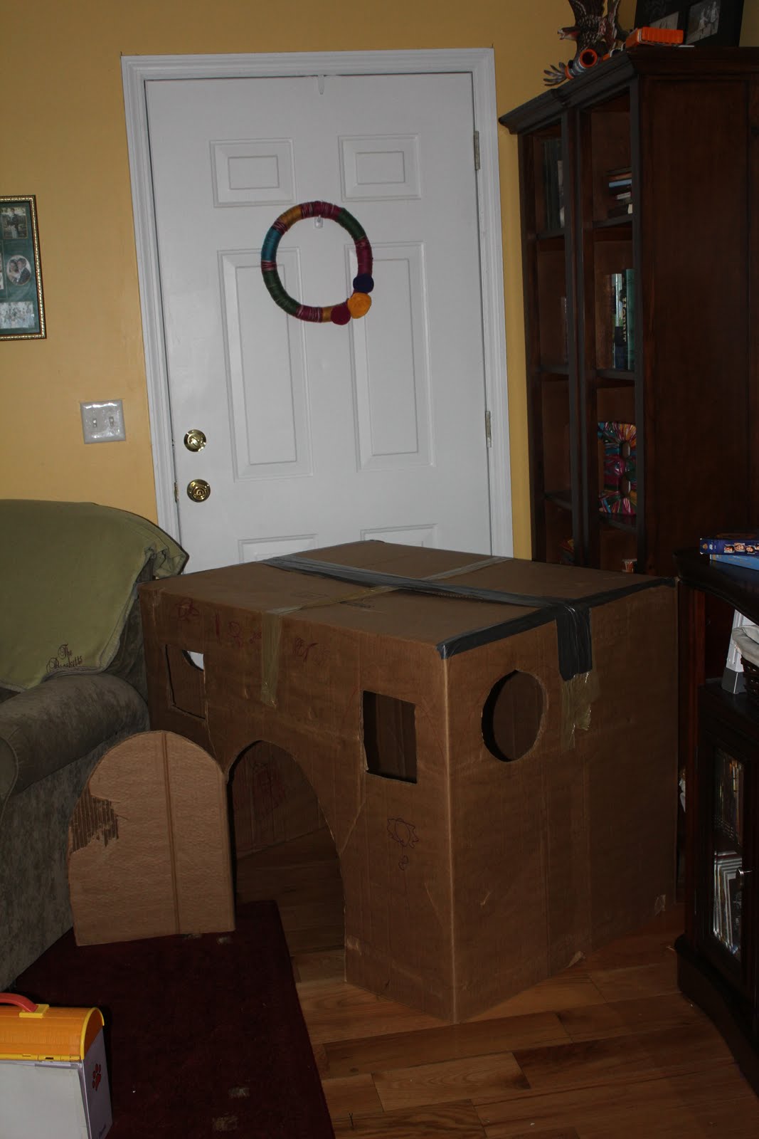 2.  Find a new home for this very large cardboard box turned playhouse that was supposed to only last through New Year’s.  It’s still here and they still play in it.  We need a new distraction.