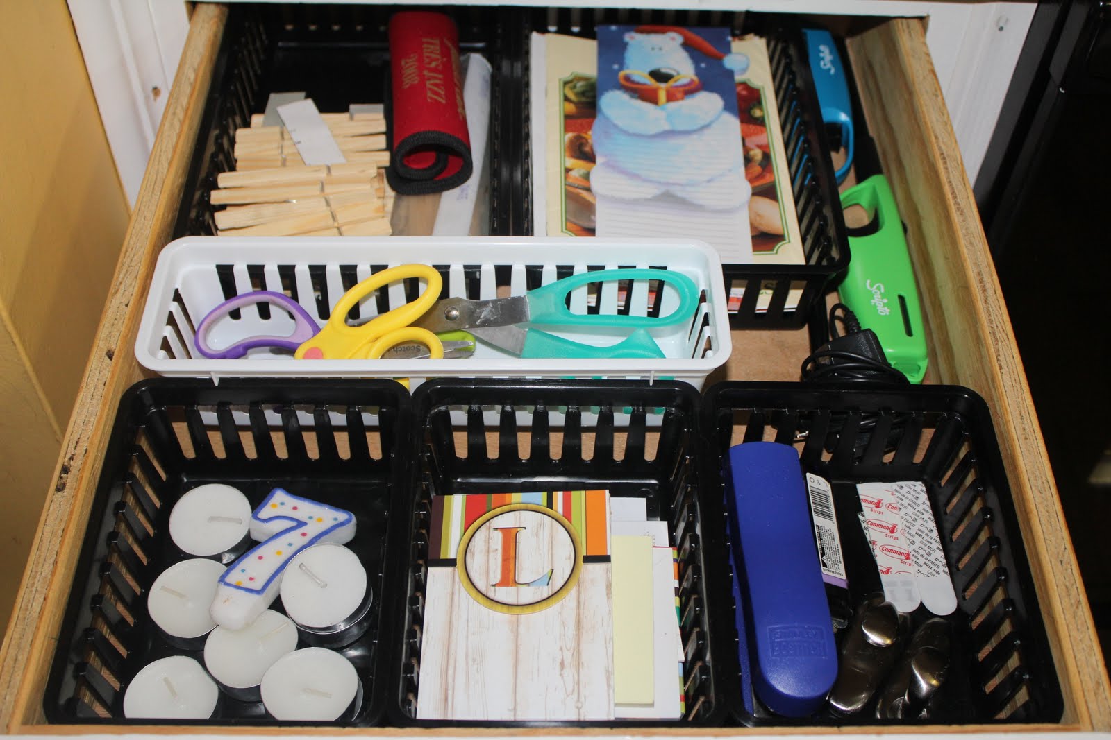 And cheapo baskets from Wal-mart because drawer organizers cost like $9.