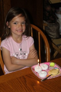 When you are six, you request doughnuts for your birthday breakfast and mommy makes cheese grits too because she knows you love them and it makes her feel less guilty about feeding you powdered sugar for breakfast.