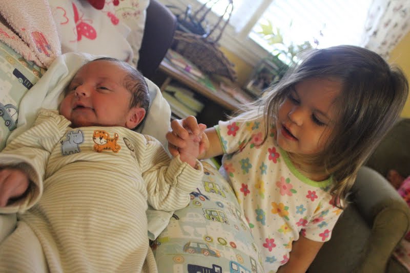 one week old today~lots of sissy loving~annabelle keeps count of how many times she’s held him~falls asleep anywhere except his cradle at night~big eyes that get bigger when the sissy monsters are around~Uncle Corey will have to teach him to survive a house of girls~holding hands is the sweetest moment until she squeezes too hard~good and perfect gifts from above