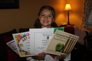 Still proud. Still tears springing to my eyes when she got the Art Award (her favorite class!) and a reading achievement award and Perfect Attendance.
