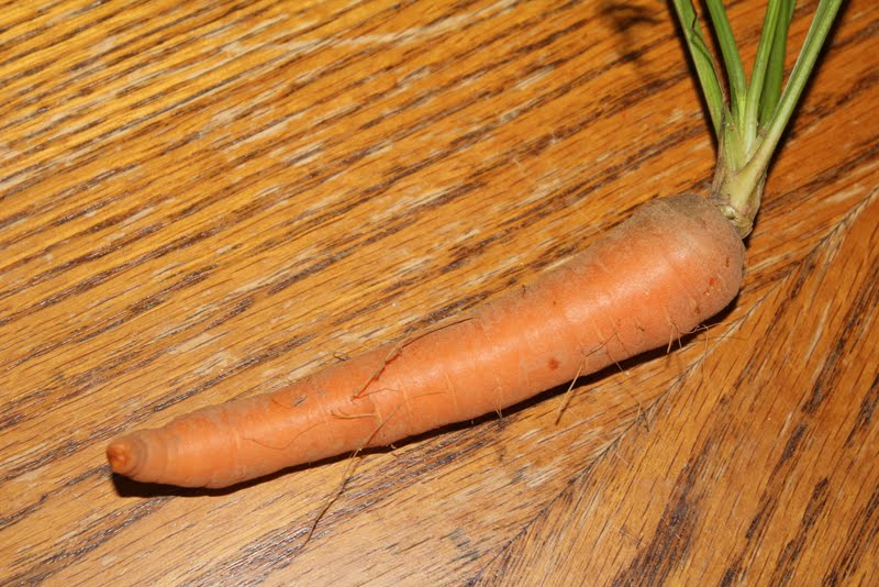 Madelynne is excited about the carrots.  We actually pulled one and they are almost ready.