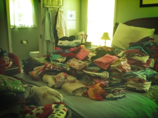 There are shirts from Justice and jeans from Gap and dresses from Children’s Place in that pile. There are brand new winter boots and three winter coats and complete Gymboree outfits down to the hairbow. There are clothes to cover Amelia until first grade. (fyi, she’s only three.)