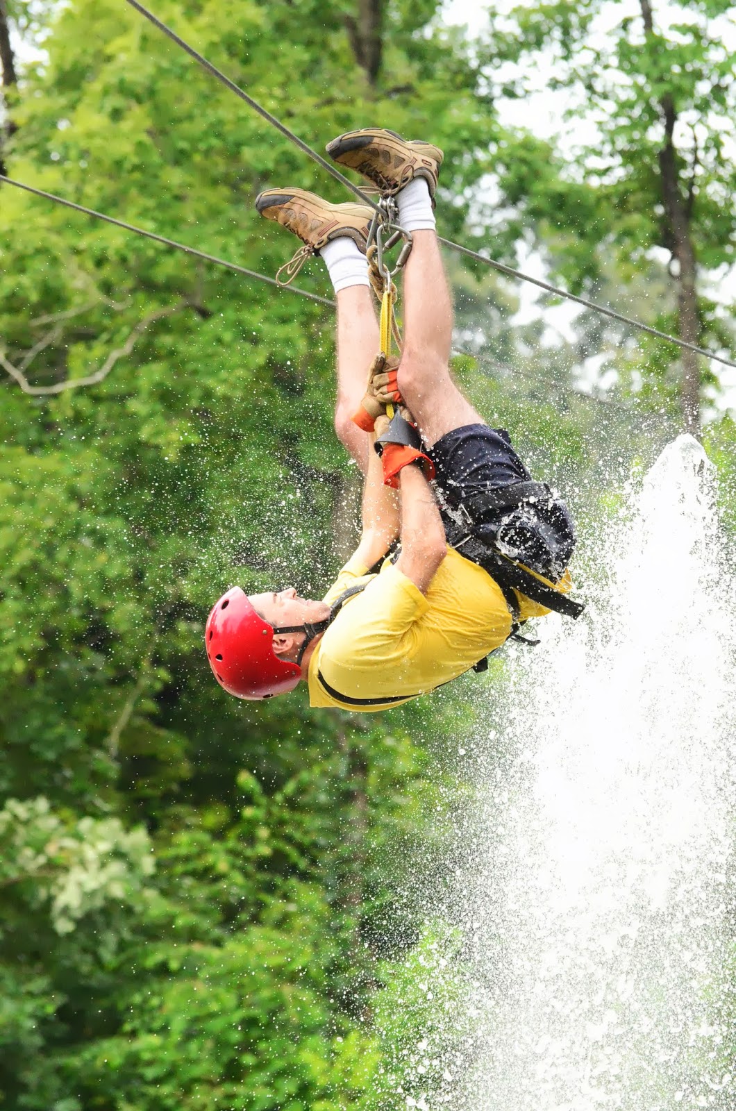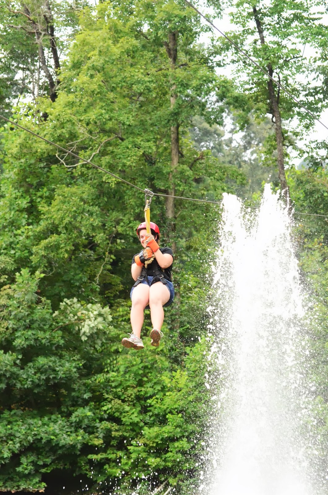 The last zip was over a lake with a fountain and you go with a partner and the likelihood that one of you will get wet. I left that to my husband because after all, this was his idea.