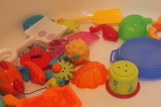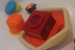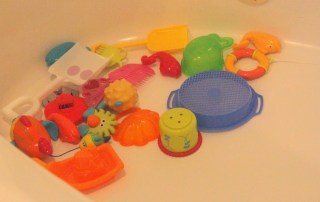 And despite our good intentions and our purchasing of turtle shaped scoops and plastic open weave baskets and shrimp boat captains that don’t absorb water, the toys cover the bottom of the tub and sit in dirty bathwater that someone forgot to drain, and sometimes there’s slime underneath the ducky until I huff and puff and scrape everything up and begin to squeeze those squishy toys that delight toddlers and disgruntle mothers.