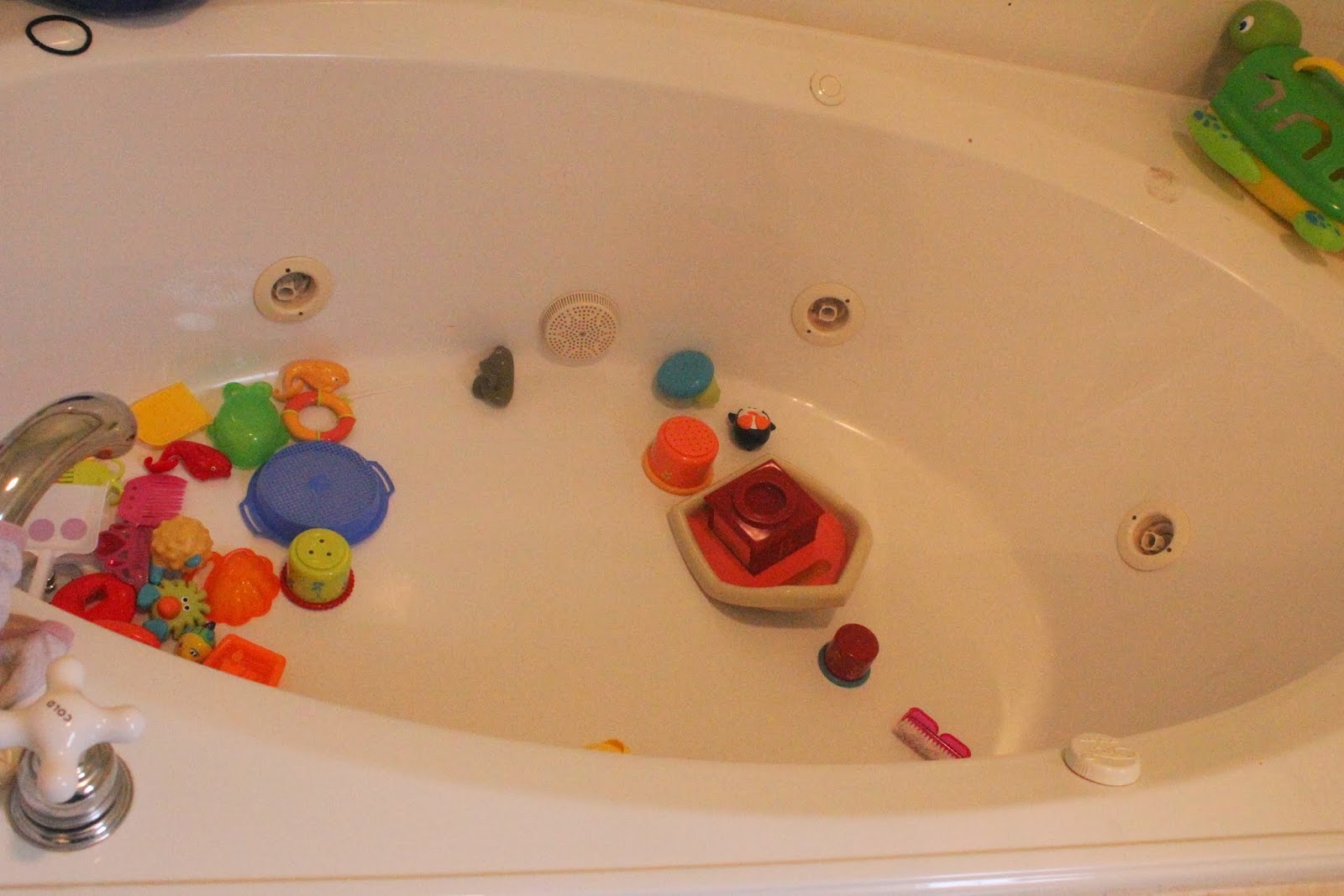 Sometime in the recent past the tub toys took over my jetted bathtub and I succumbed fully to motherhood of four. Sometime in the very recent past we realized that not all four of them can fit in the tub together anymore, and shampoo bottles migrated back down the hall to the bath with a shower, but the toys have stayed.