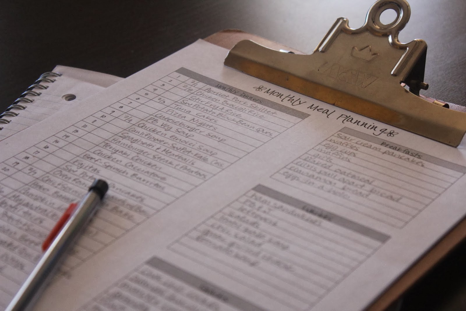 So, instead, when I meal plan I start with what I already have. A quick assessment of my pantry and freezer helps me know what is available to me immediately. I keep an inventory of what’s on hand using these printables from Getting It Together: A Home Management System that Works. But I don’t update these as often as I’d like, so often I just do a quick scan of the shelves and make notes of the meals I could make on the Monthly Meal Planning guide from the same set of printables. (And sometimes I’m out of ink in the printer, so I just write on a piece of paper, because, you know, whatever gets it done.)