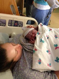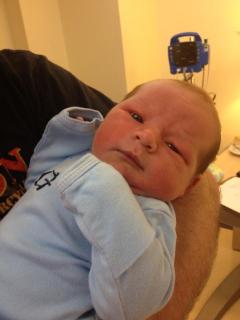 He decided early Saturday morning that he was ready and she moved fairly quickly through labor, quickly enough that since she was birthing in a hospital that doesn’t give epidurals and was a bit afraid of the alternative, she made my mama so very proud by giving birth naturally. Then, as if that wasn’t enough to be impressive, the stats came in: 9 lbs 13 oz, 24 and 3/4 inches.